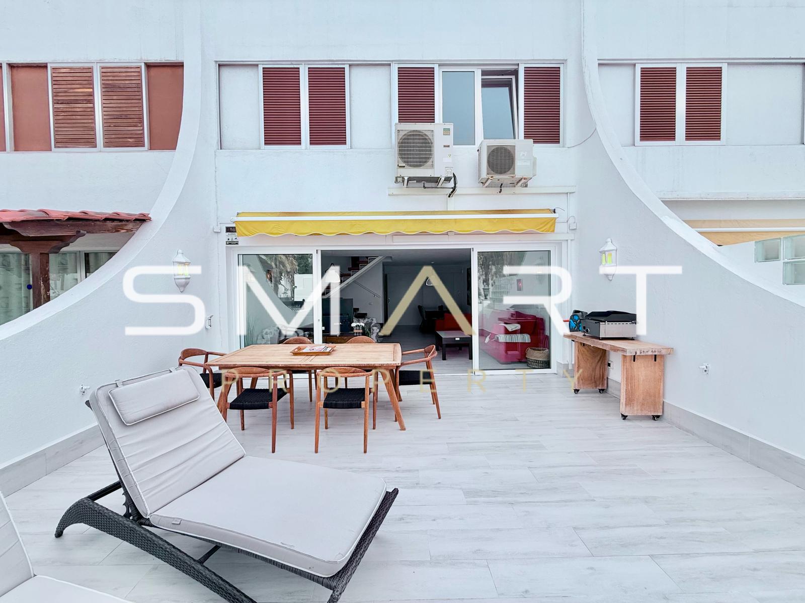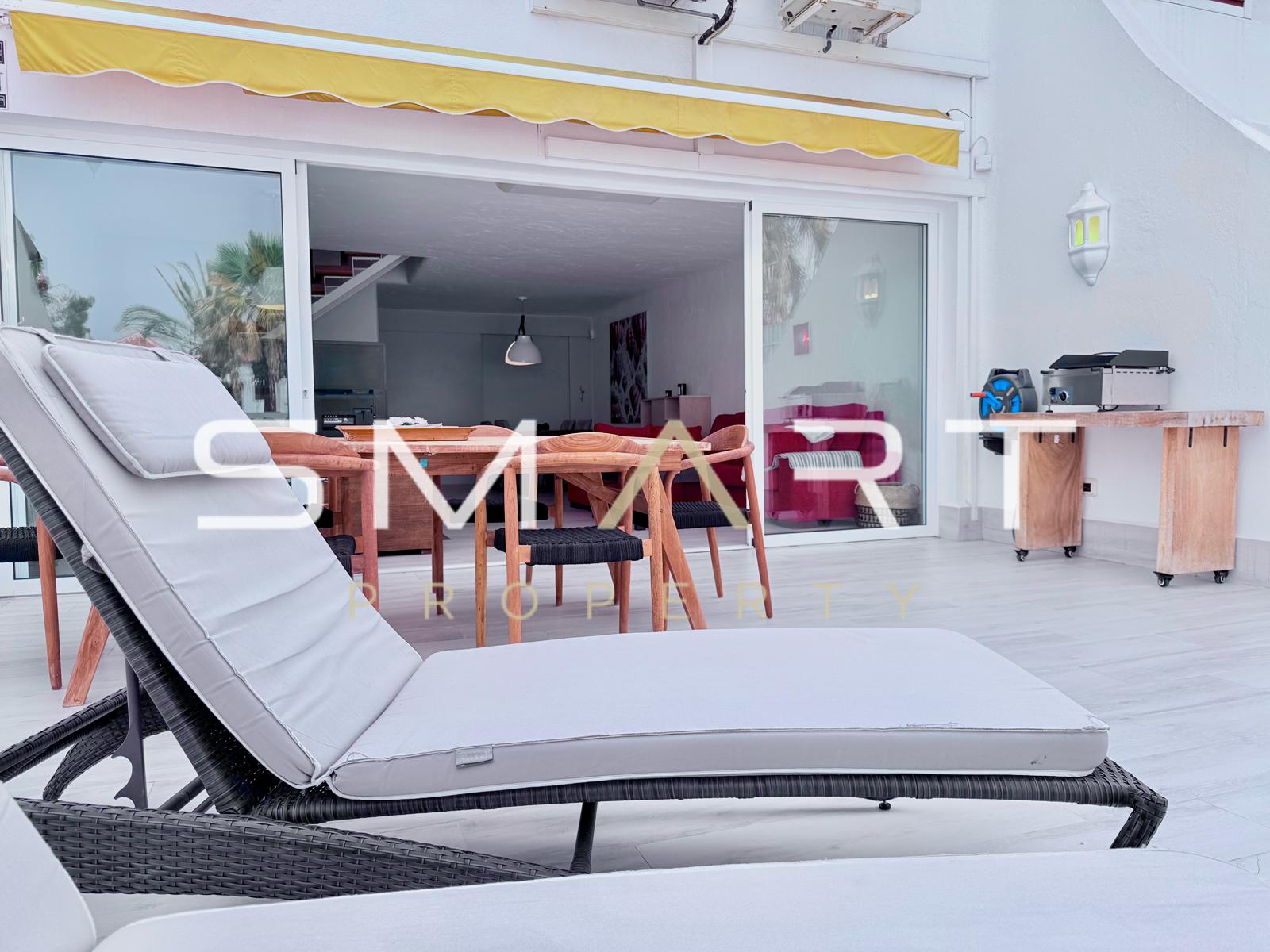 À vendre, duplex exclusif rénové dans l’immeuble Rebecca, situé au cœur de Playa de las Américas, à seulement 6 minutes à pied de la plage.