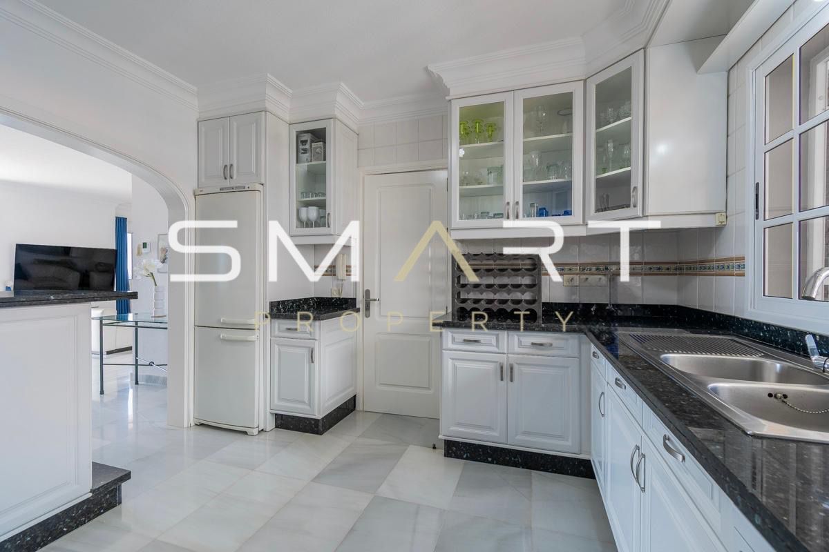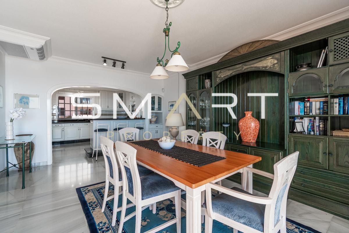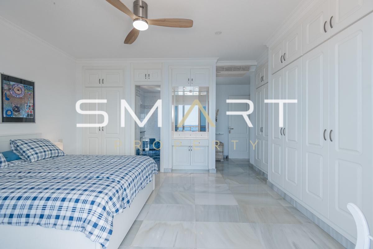 L’appartement offre une surface habitable d’environ 150 m² et une surface totale d’environ 279 m². Il se compose de deux grandes chambres, chacune avec sa propre salle de bain complète et bidet, ainsi qu’une troisième salle de bain supplémentaire avec douche. Il dispose également d’un bureau pouvant facilement être aménagé en troisième chambre, ainsi que d’une buanderie pratique. Les sols en marbre apportent une touche élégante et intemporelle à l’ensemble du bien.